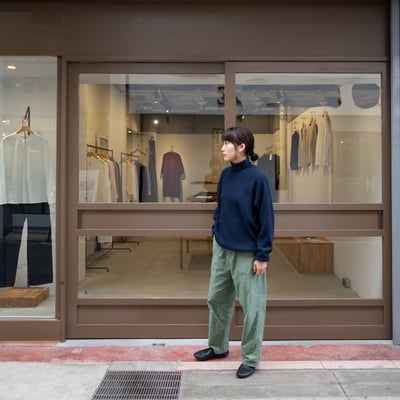 ワッフルのカジュアルなミリタリー感とタートルのきちんと感が馴染んだ絶妙なバランス。