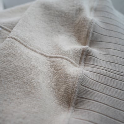 裾・襟・袖口の針抜きの伸縮性あるフライスを。