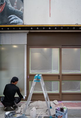 今日はお店のドアの塗り替えをペンキ屋さんにお願いしていたので