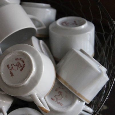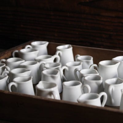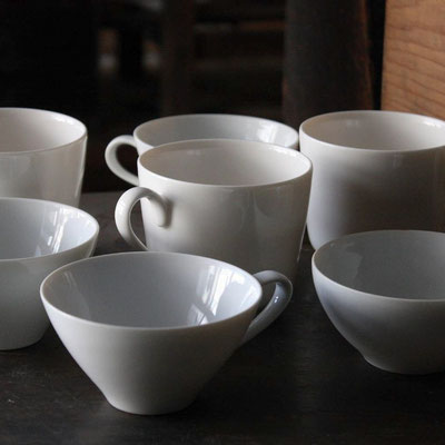 70年代デッドストックの白磁のカップやミルクピッチャーなど、