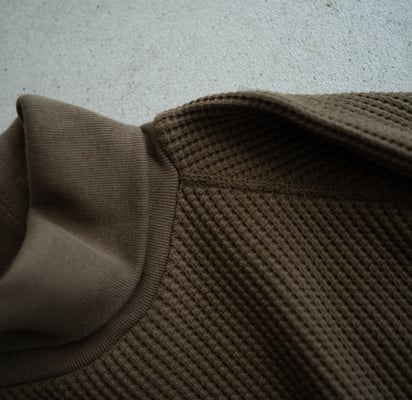 ニットではないけれど、ワッフル生地の構造でしっかりあたたかく、
