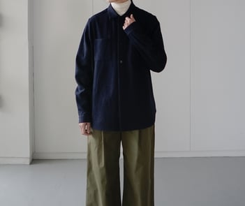 4位 縮絨コットンウールツイルシャツ/ネイビー
