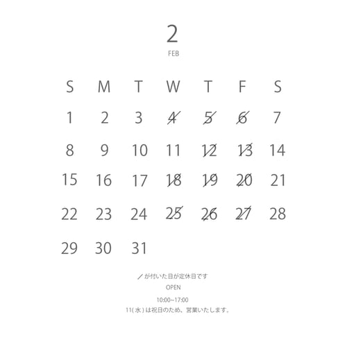 2026.2月の営業時間は土日祝日も上記の通りになります。